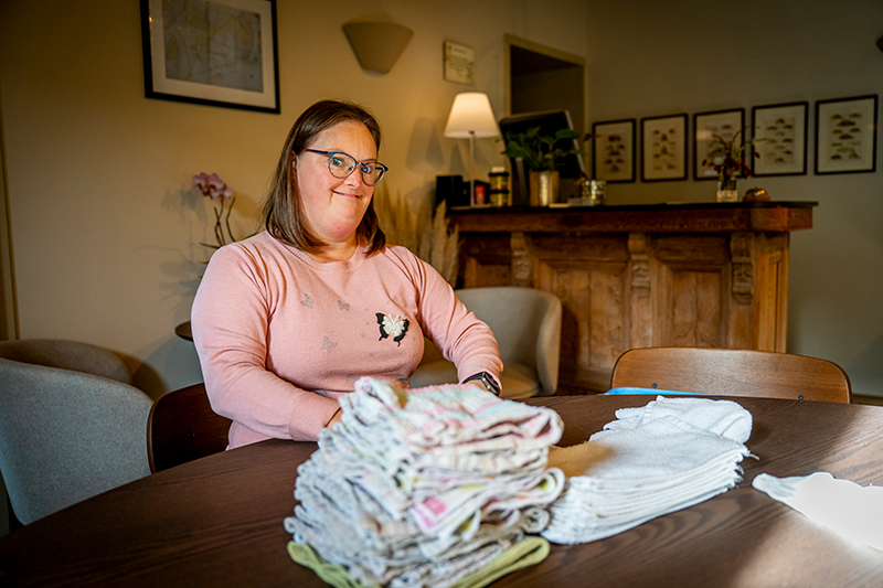 Elke woensdag- en vrijdagnamiddag worden ze in deze chique setting welkom geheten door Leen, het manusje-van-alles bij Domein Marsnil. Leen draagt haar steentje bij aan het domein met was plooien, strijken, groenten snijden… Bij elke huishoudelijke taak kan zaakvoerster Isabelle rekenen op haar rechterhand. “Onze gasten zijn altijd positief verrast als Leen hen welkom heet. Iedereen kent wel iemand met een zorgnood en het wordt gewaardeerd dat we ze tewerkstellen”, vertelt ze.